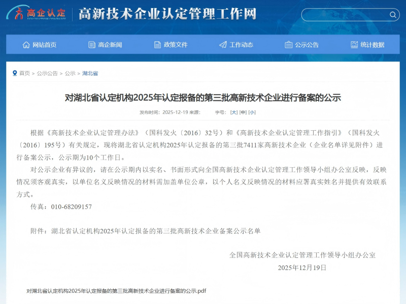 近日,由湖北省科技行政管理部门同本级财政、税务部门组成本地区高新技术企业认定管理机构(以下称“认定机构”)公布2025年认定报备的第三批高新技术企业备案名单,湖北大衡工程检测有限公司(以下称 “大衡公司”),凭借在水利工程检测领域的技术创新实力与核心竞争力,成功入选,正式跻身国家高新技术企业行列!