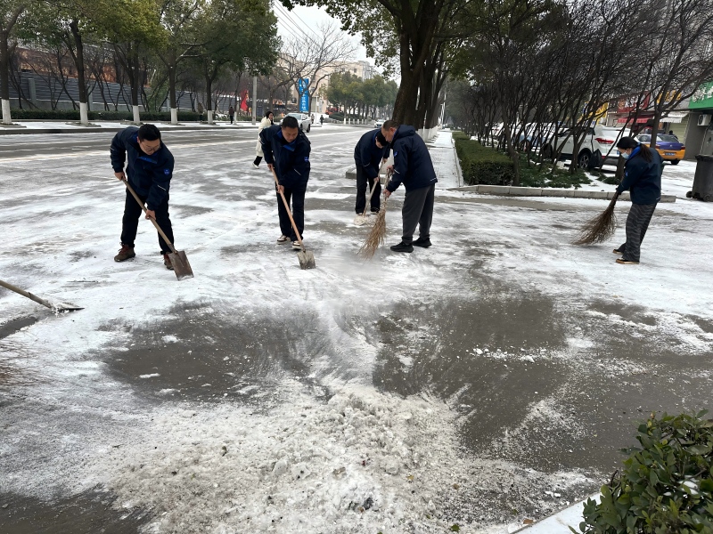 “路面结冰太危险,必须尽快清理干净,保障大家出行安全!”清晨,天刚蒙蒙亮,大衡检测的干部职工已携带铁锹、扫帚、除雪铲等工具集结完毕。公司领导班子和率先垂范、冲锋在前,带领全体人员奔赴指定责任路段。寒风凛冽刺骨,冰雪湿滑难行,大家却丝毫没有退缩,迅速分工协作、有条不紊地投入战斗。有的弯腰用扫帚清扫浮雪,有的挥起铁锹铲除冰层,有的合力将堆积的冰雪搬运至安全区域,工具与地面碰撞的“叮叮当当”声、大家相互鼓劲的吆喝声,在冬日的寒风中交织成一曲动人的劳动赞歌。